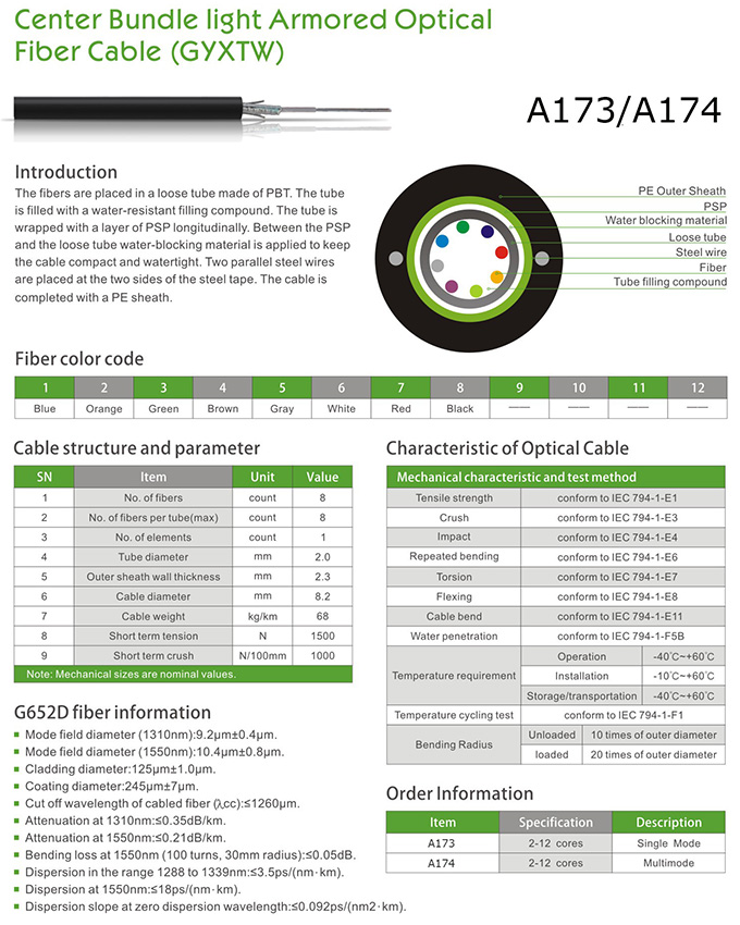 Center Bundle Light Armored Optical Fiber Cable (GYXTW)