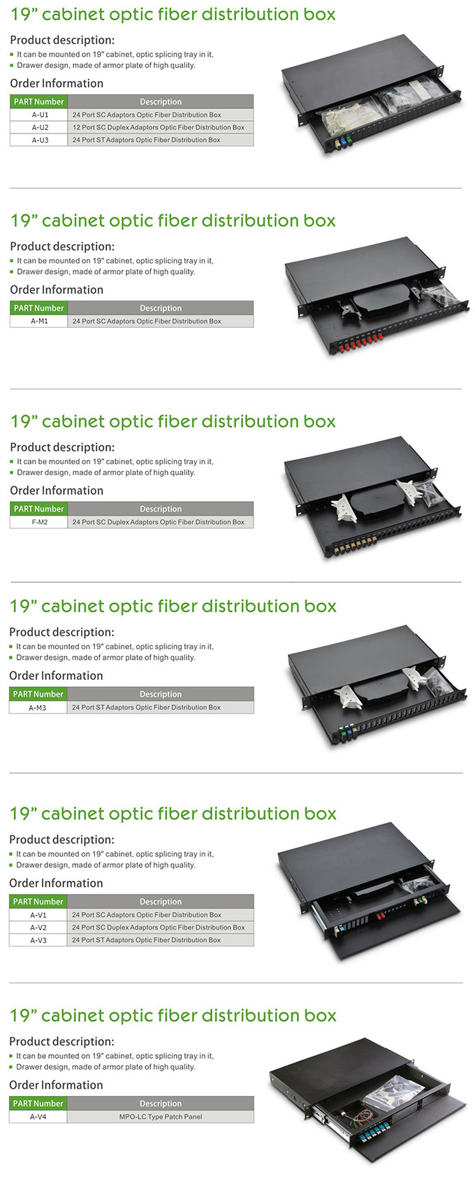 19" Cabinet Optic Fiber Distribution Box