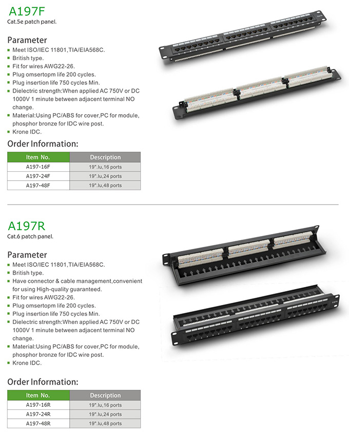 A197F Cat.5e/A197R Cat.6 patch panel